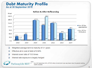 On my radar too are some reits (real estate investment trusts) which are of interest to me. The one that I am most interested in is Parkwaylife Reit, currently trading at 2.62.